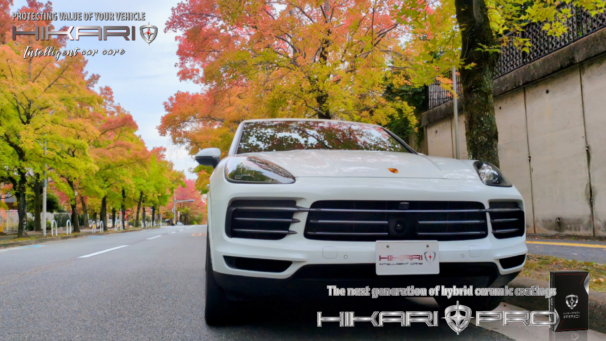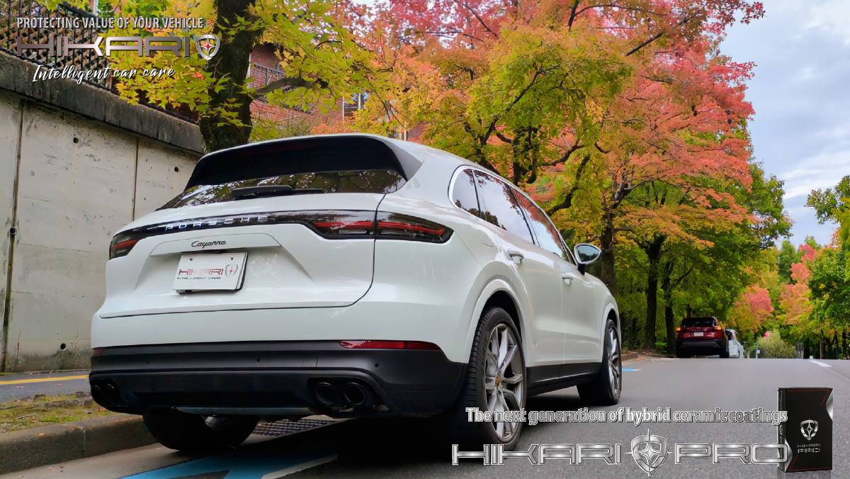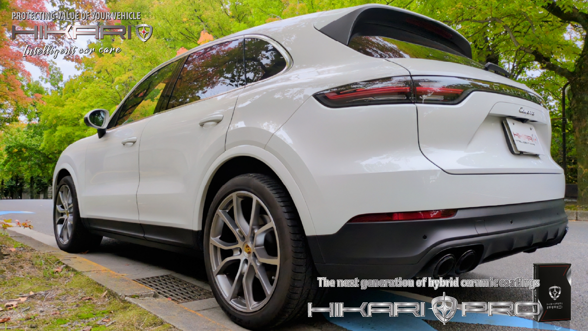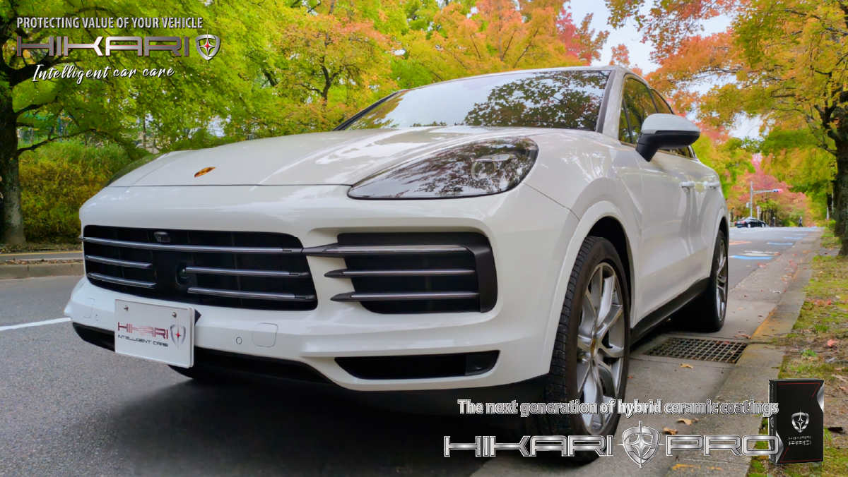 どの角度から見ても息をのむ美しさ、PORSCHE CAYENNEには、最高級の輝きを与えるHIKARI PRO しか選択肢はございません。