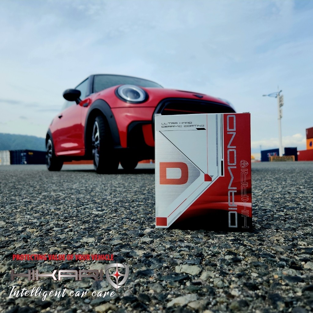 かわいい てんとう虫のような赤いMINIにHIKARIダイヤモンドをセラミックコーティング。