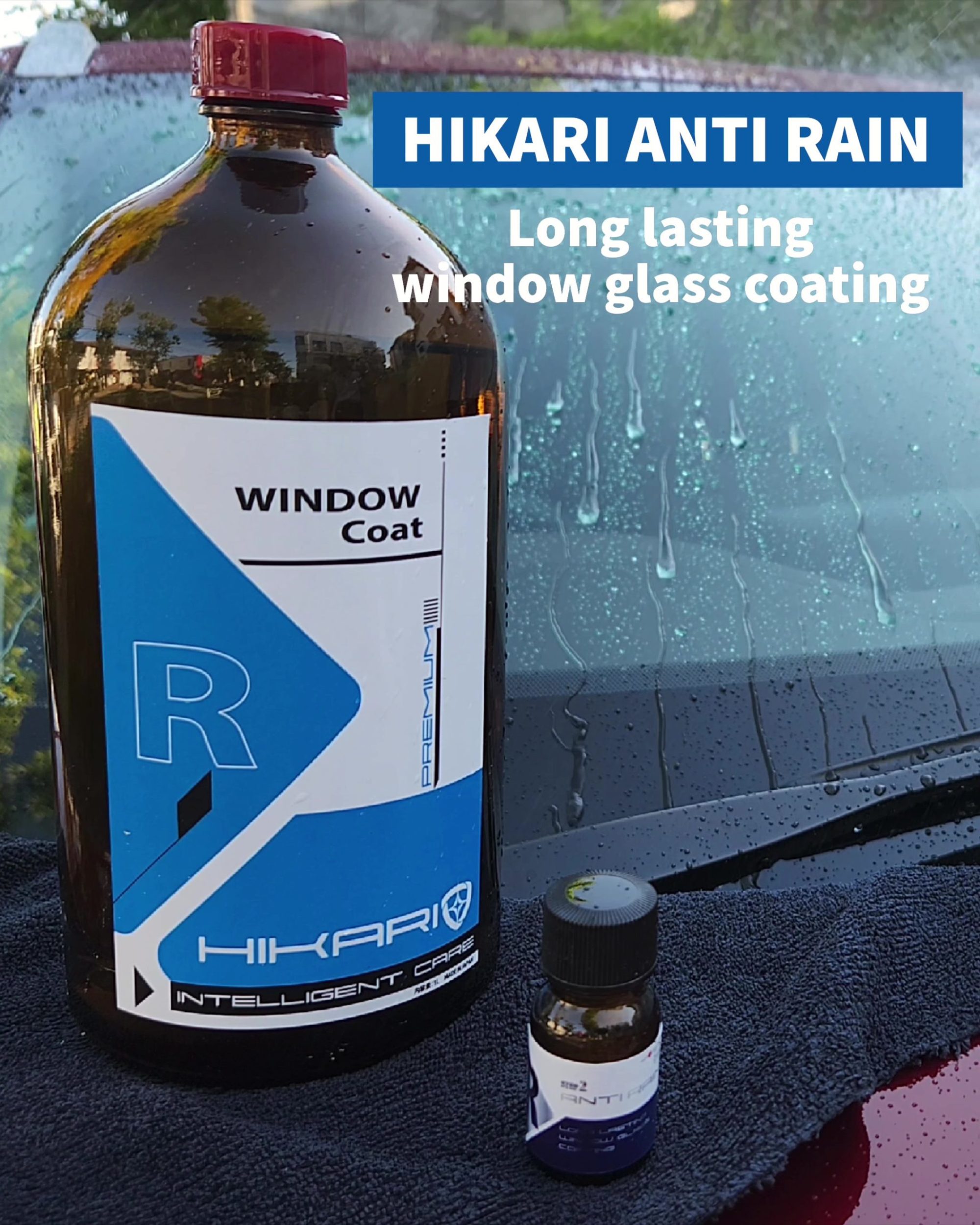 ウインドウ用コーティング剤 HIKARI ANTI RAIN の水弾きテストです。