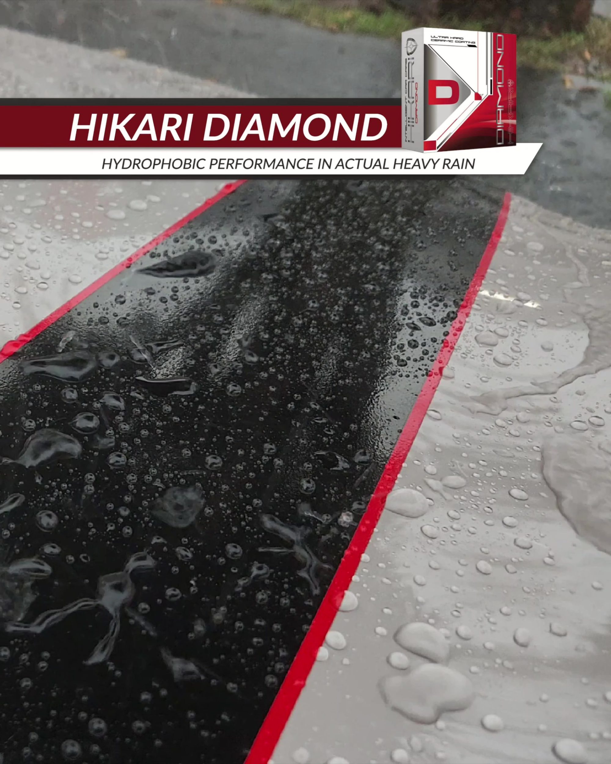 HIKARI DIAMOND の滑水性能 でどんな汚れも雨と一緒に全て転がり落ちていきます。