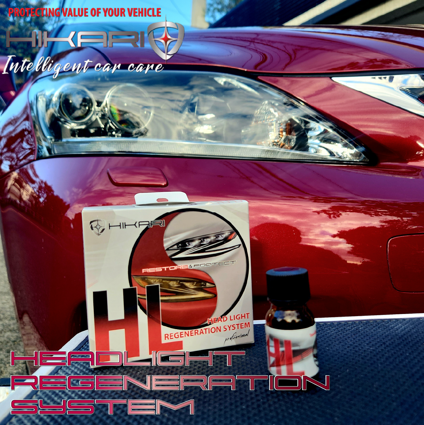 HIKARIセラミックコーティングでボディを蘇らせたついでに、ヘッドライトも輝かせます。