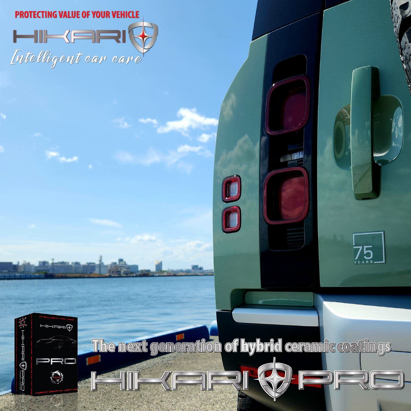 ランドローバー ディフェンダーの75周年特別記念モデルにHIKARIセラミックコーティングをコーティング。