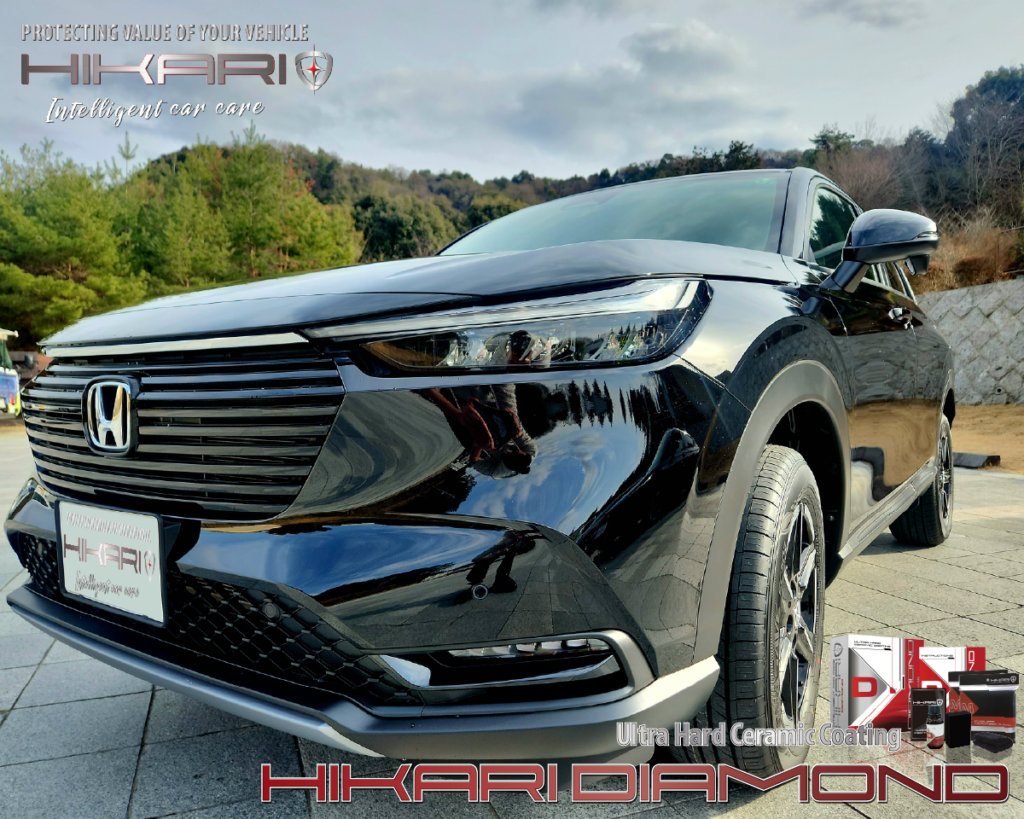 今回の黒色のヴェゼルにはより力を与えるHIKARI DIAMONDを塗布。