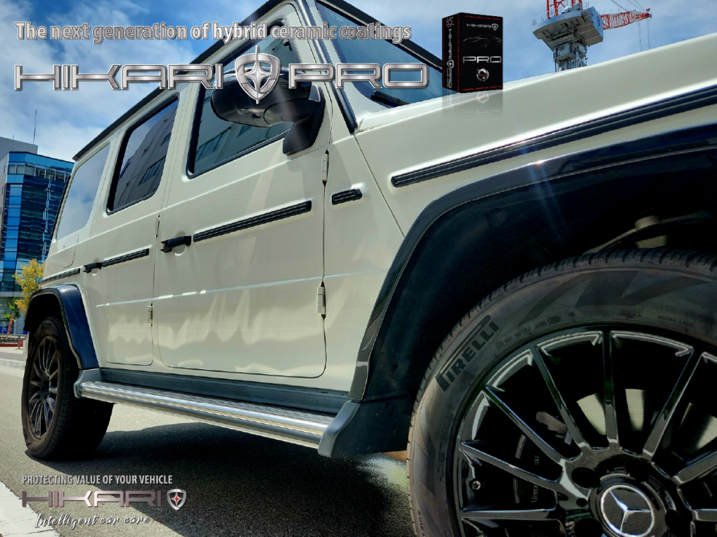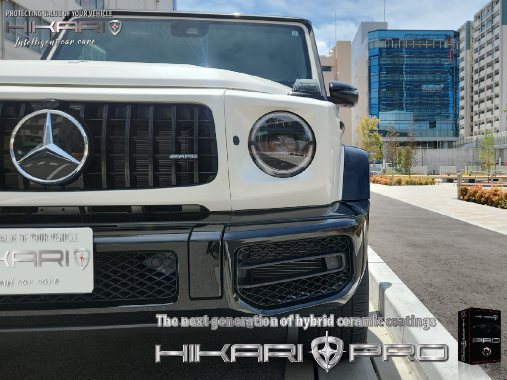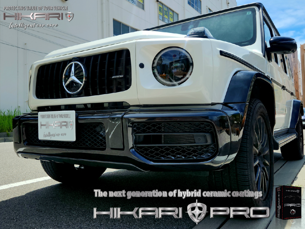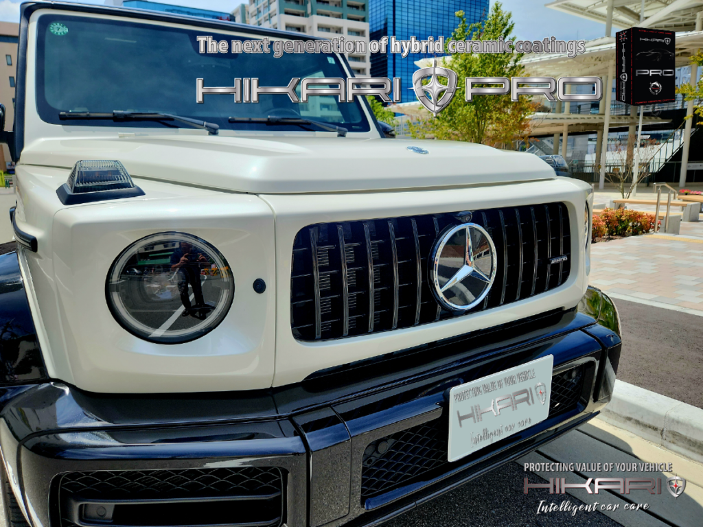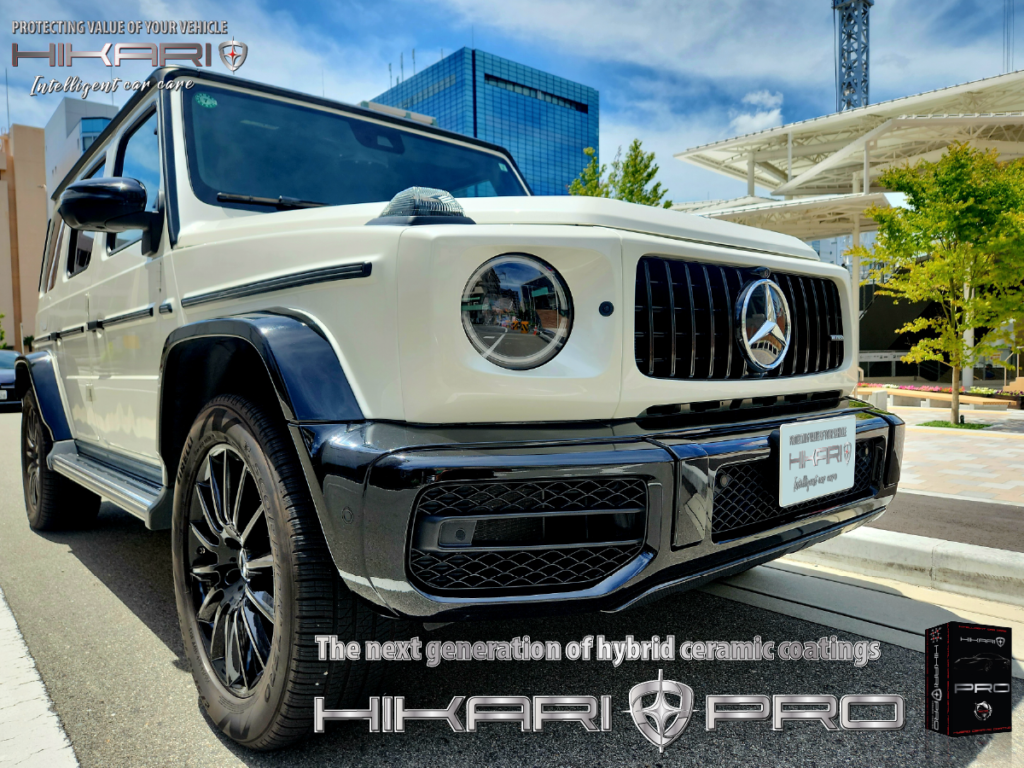 こにいても唯一無二の存在感を放つメルセデスベンツGクラスにHIKARIセラミックコーティングです。
