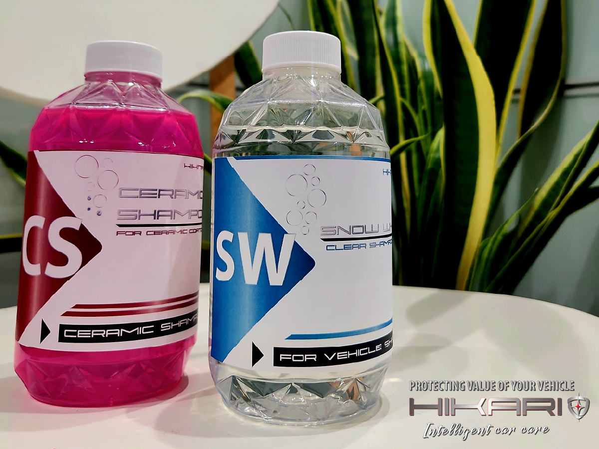 抜群の洗浄力をもつカーシャンプーと水弾き性能とツヤを復活するセラミックシャンプー。