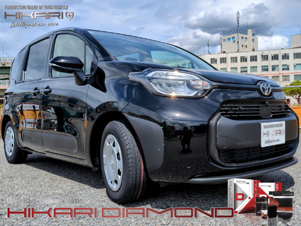 四角くて丸い、やさしいTOYOTA SIENTAに、高硬度&高密度の被膜が自慢のHIKARI DIAMOND でハード感をプラス。