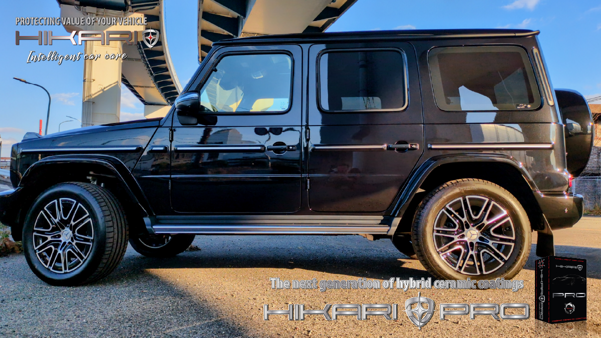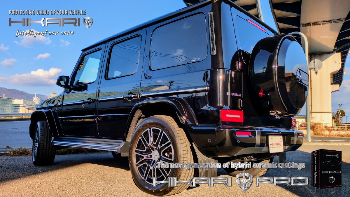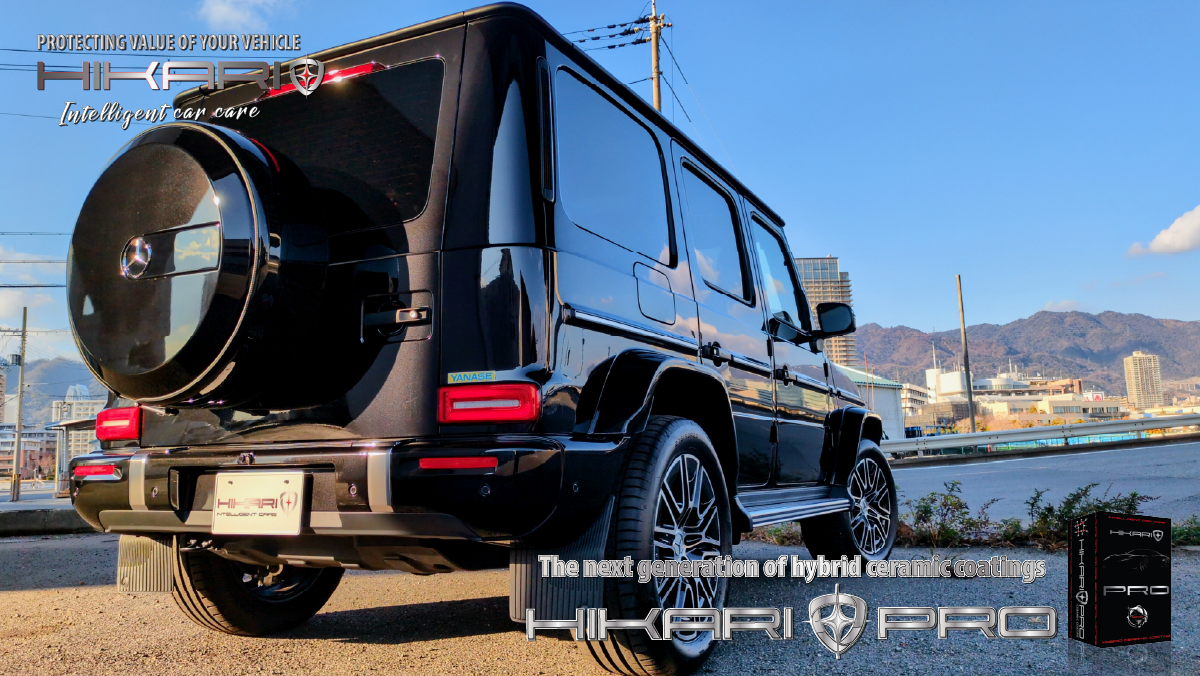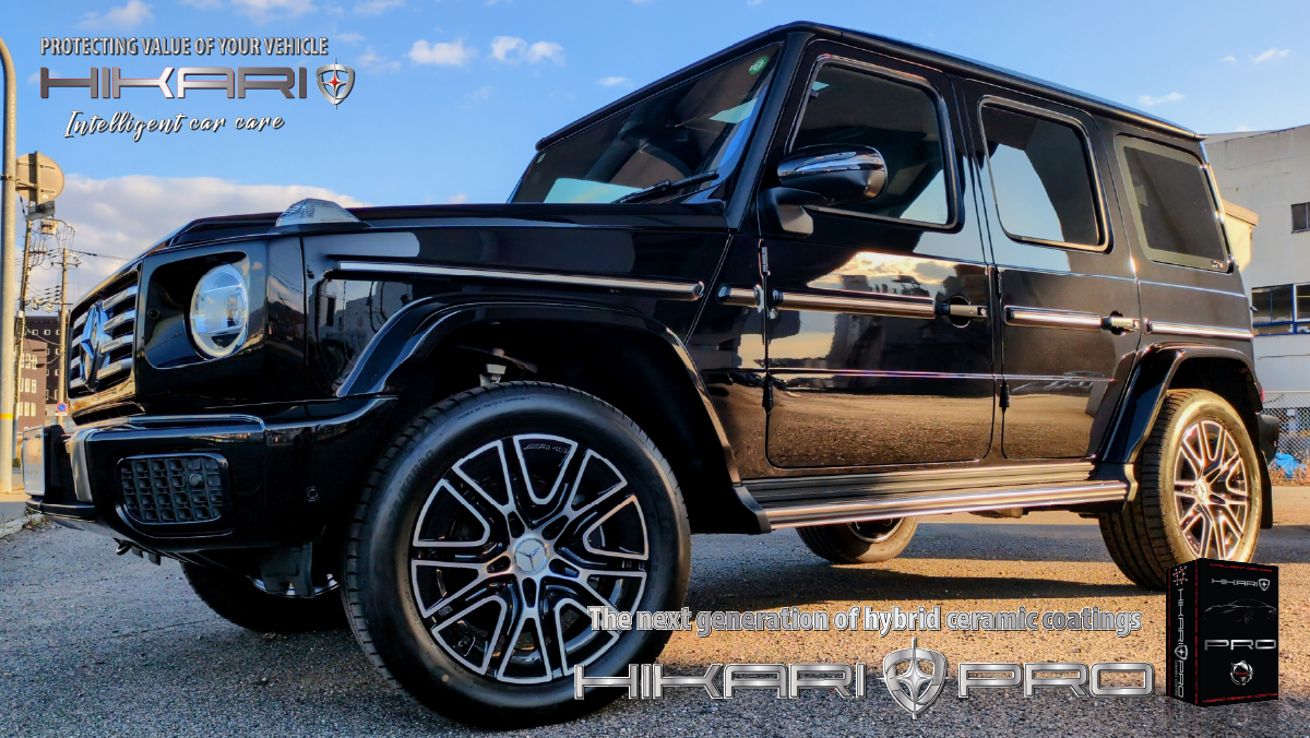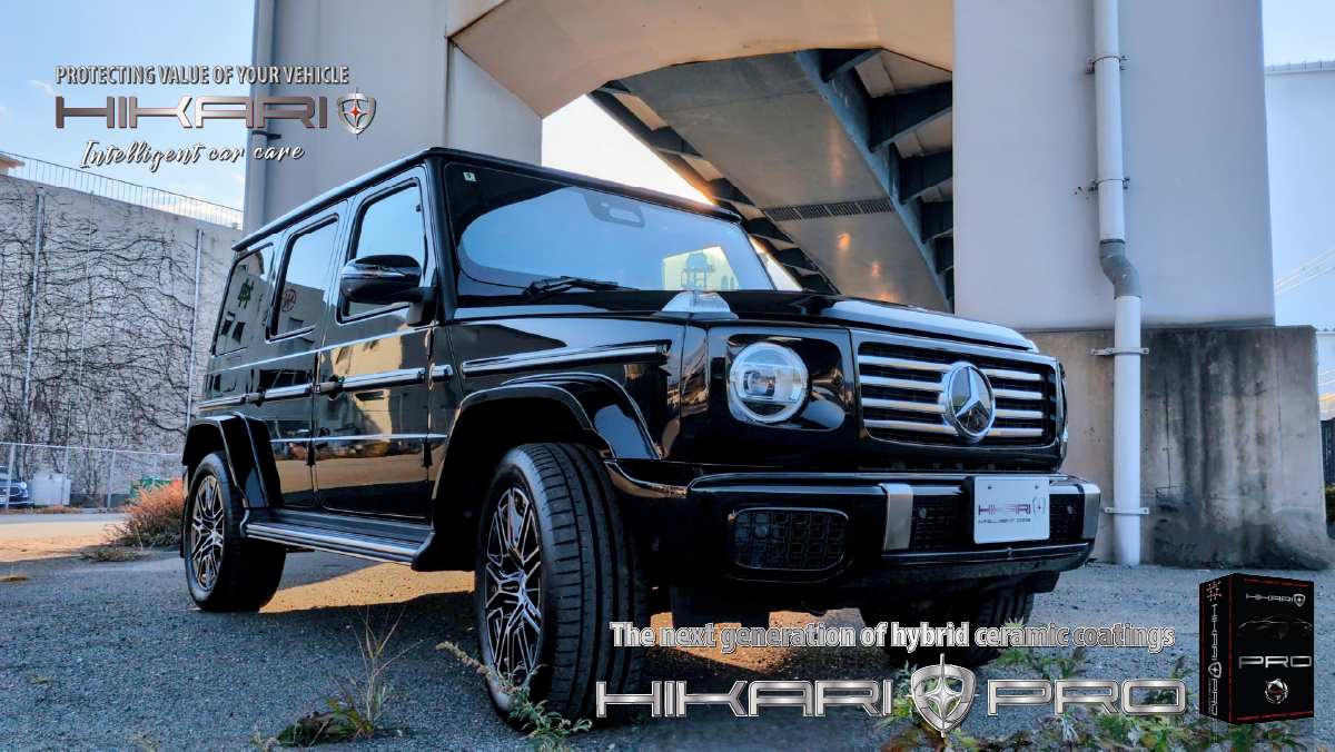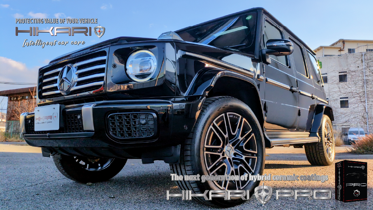 HIKARI PROが似合う唯一無二の存在感 Mercedes Benz G-クラス にHIKARIセラミックコーティングです。