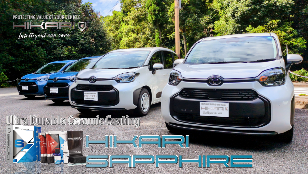 今回は、人気のブルーとホワイトのTOYOTA SIENTAにHIKARI SAPPHIREを施工しました。