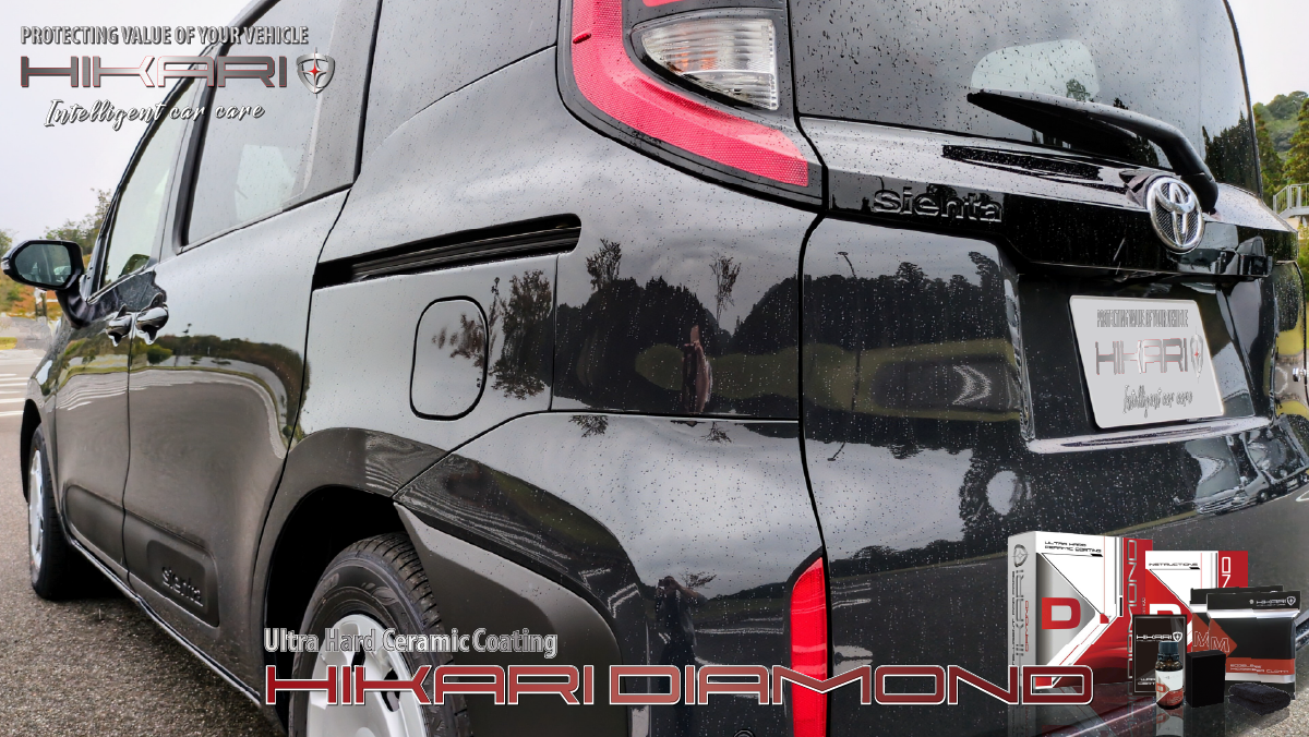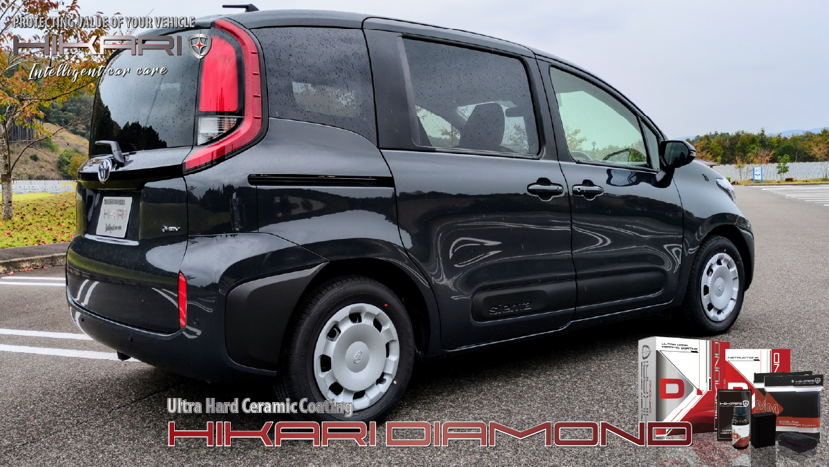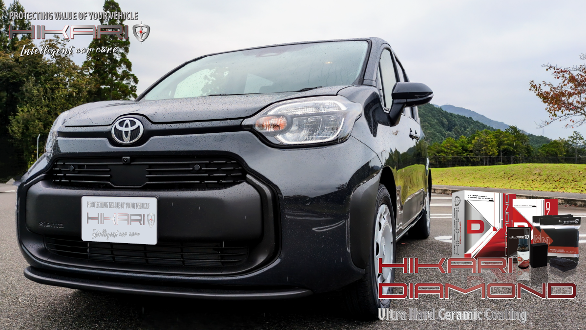 四角くて丸い、やさしい、TOYOTA SIENTAに、高硬度&高密度の被膜が自慢のHIKARI DIAMOND で耐傷性能完璧なボディを形成。