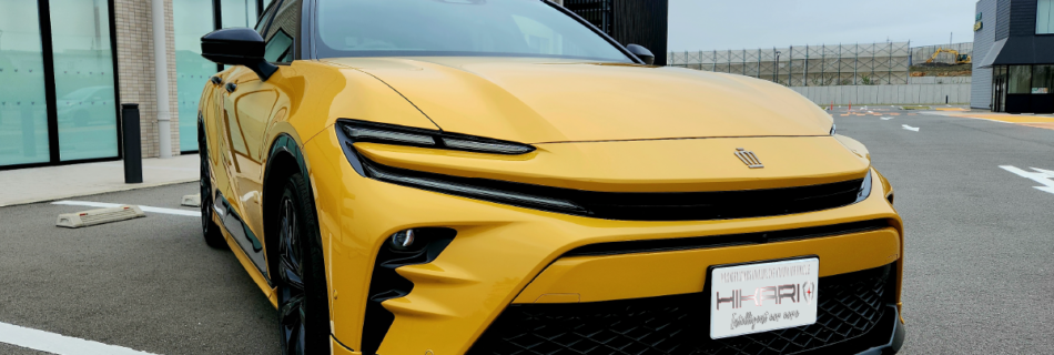 エモーショナルなデザインに更なる遊び心と興奮を。 HIKARIセラミックコーティングがその願いを叶えます。 トヨタクラウンスポーツにHIKARI PROをコーティング。 高密度高硬度のコーティング被膜が人の目を奪う、艶や …
