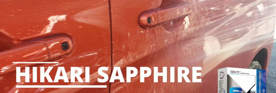 新品のようなツヤと柔軟な被膜がプラスチックパーツに対応可能なHIKARIセラミックコーティングのひとつHIKARI SAPPHIRE。 HIKARI SAPPHIRE最大の特徴の抜群の撥水効果。 塗布してない部分と塗布し …