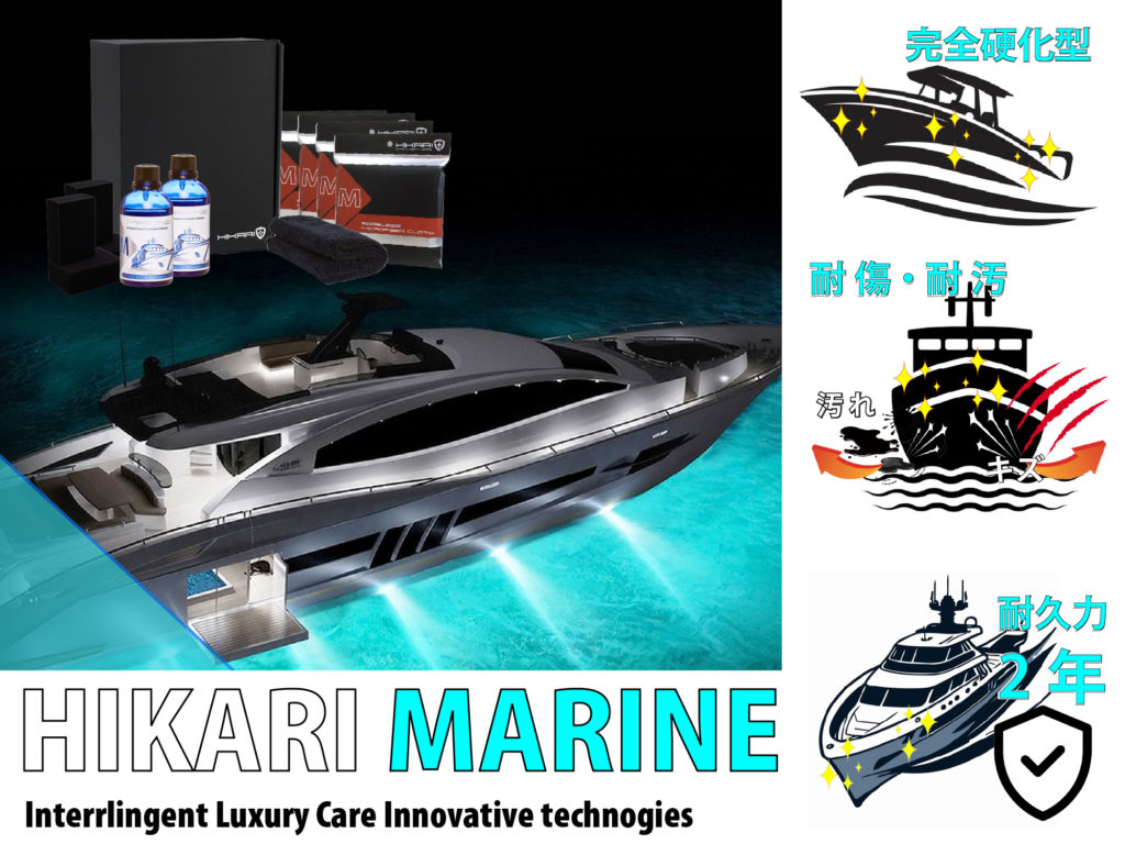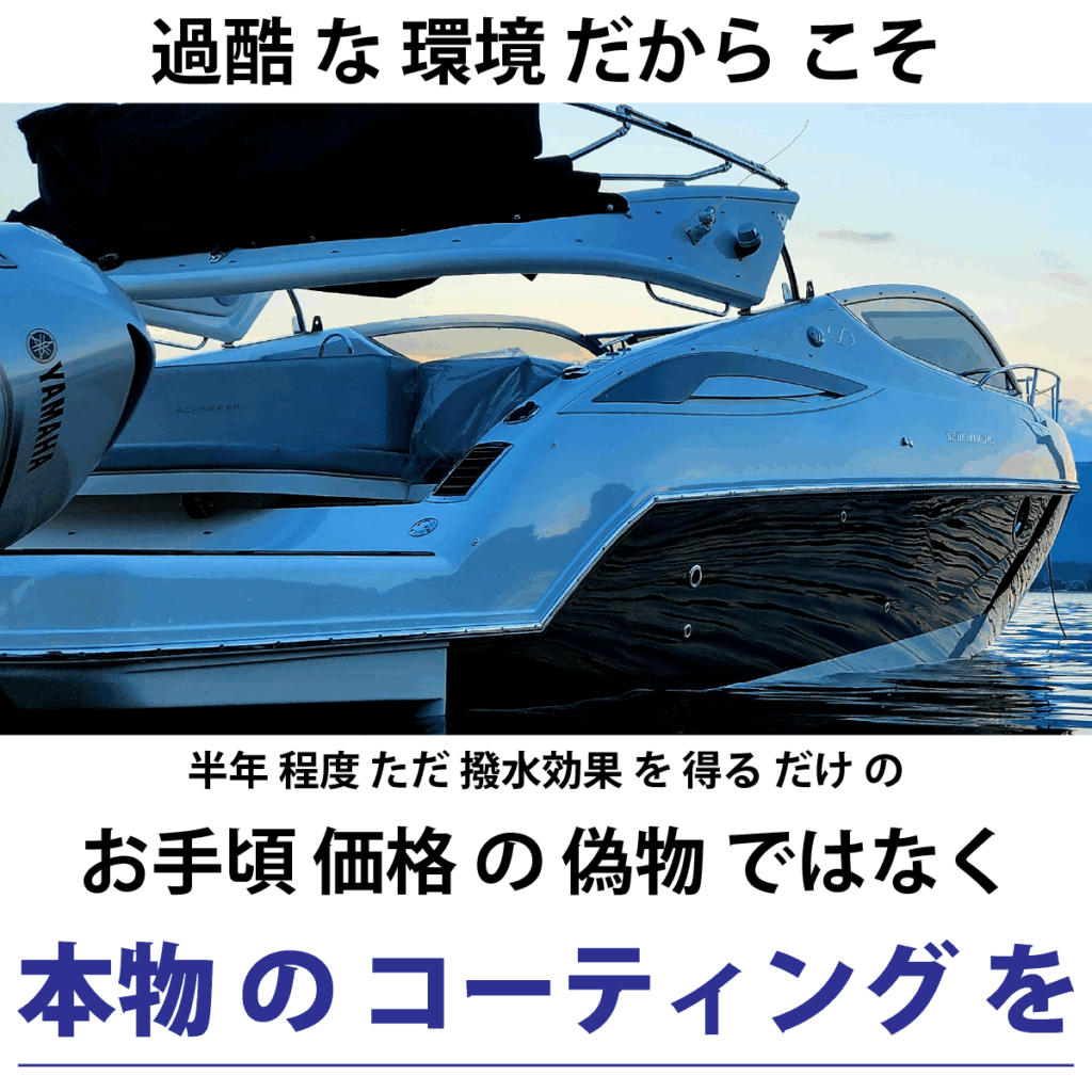 海水に浸かることで船舶の底・側面への貝や藻の付着を防ぎ、シーズンごとのお手入れも大変楽に出来る『 船用のセラミックコーティング剤 』
