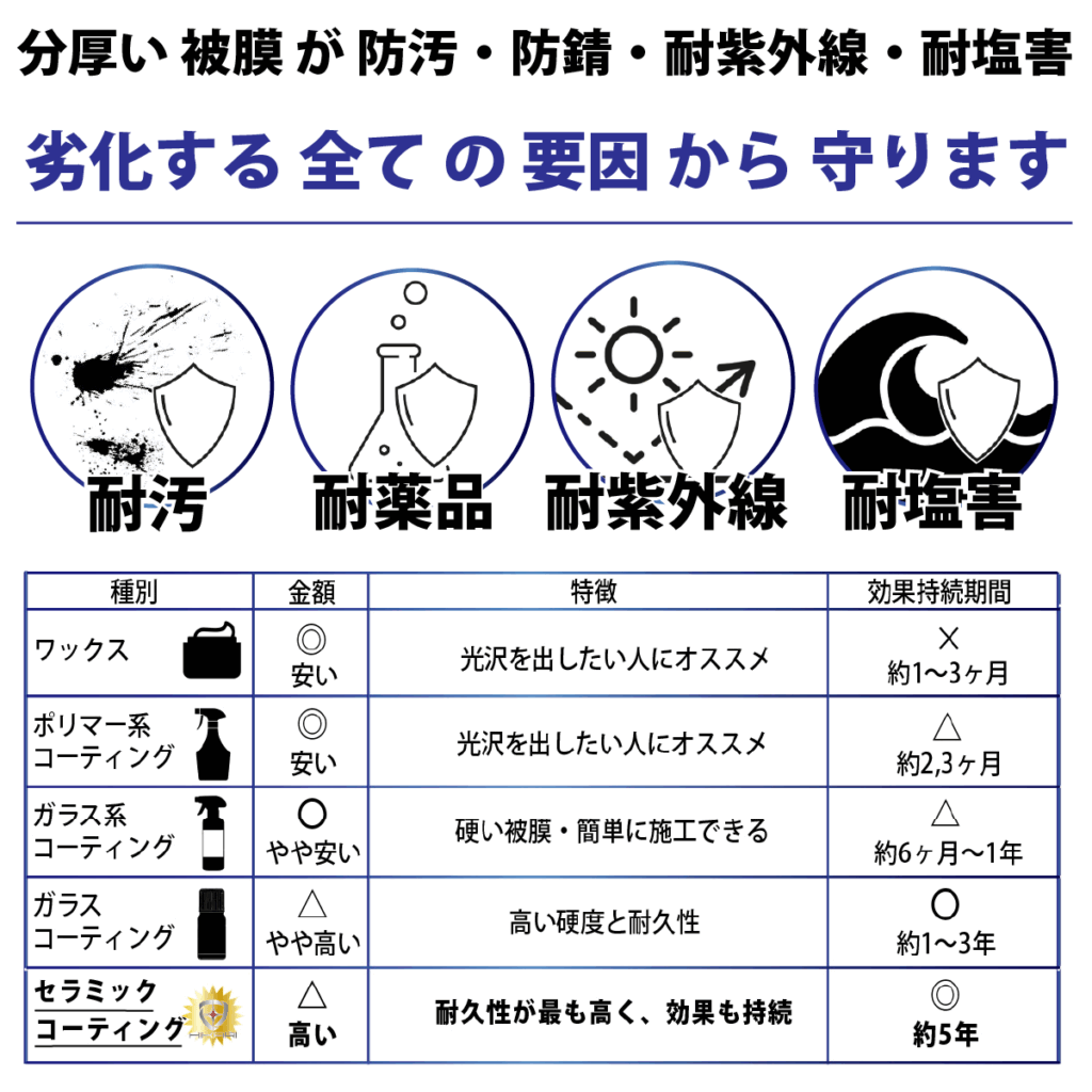 ノーワックスで紫外線や酸性雨、塩害 など の ダメージ を 大幅 に 軽減 できます。