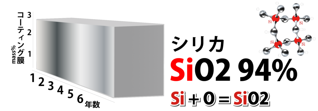 シリカ94%の高濃度のコーティング被膜は、酸化はもちろん、雨風や日光、塩害などで劣化しない高密度の被膜を形成します。