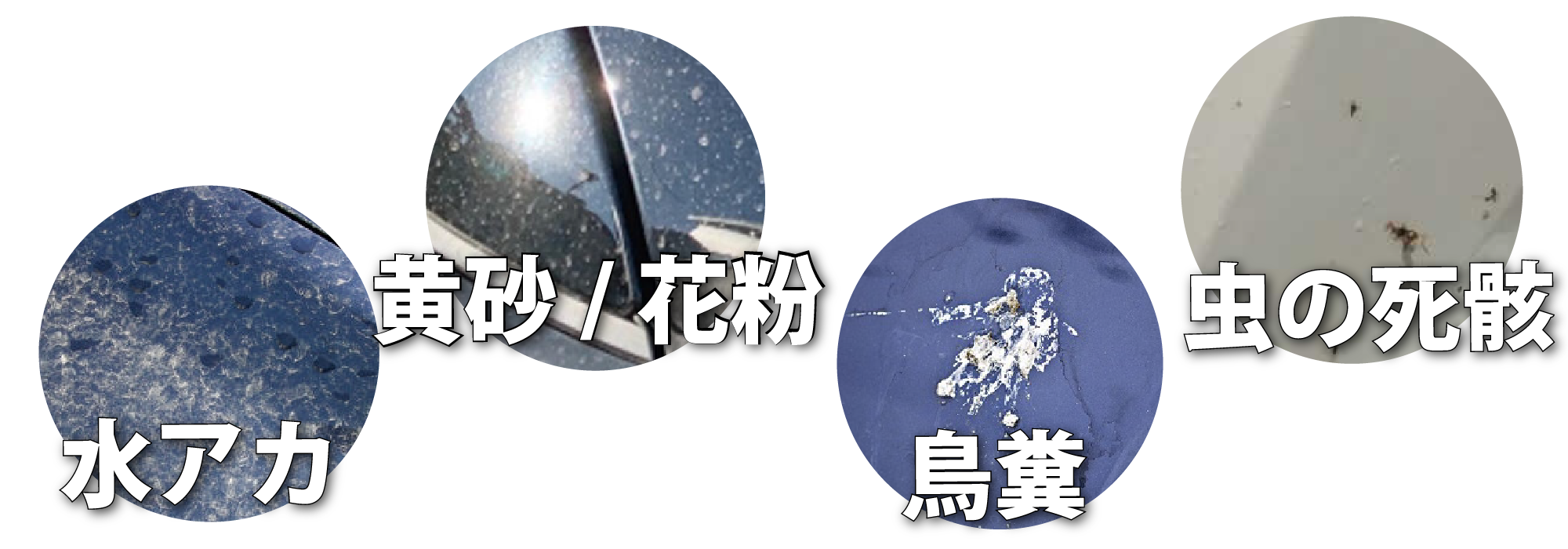 また長期間汚れを放置したとき、油や鳥の糞などの落としづらい汚れがついたときは、水洗いのみでも難しい場合がございます。