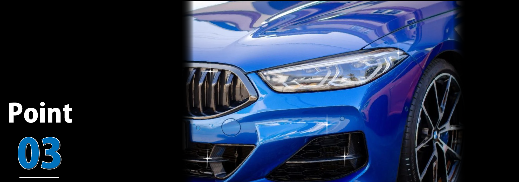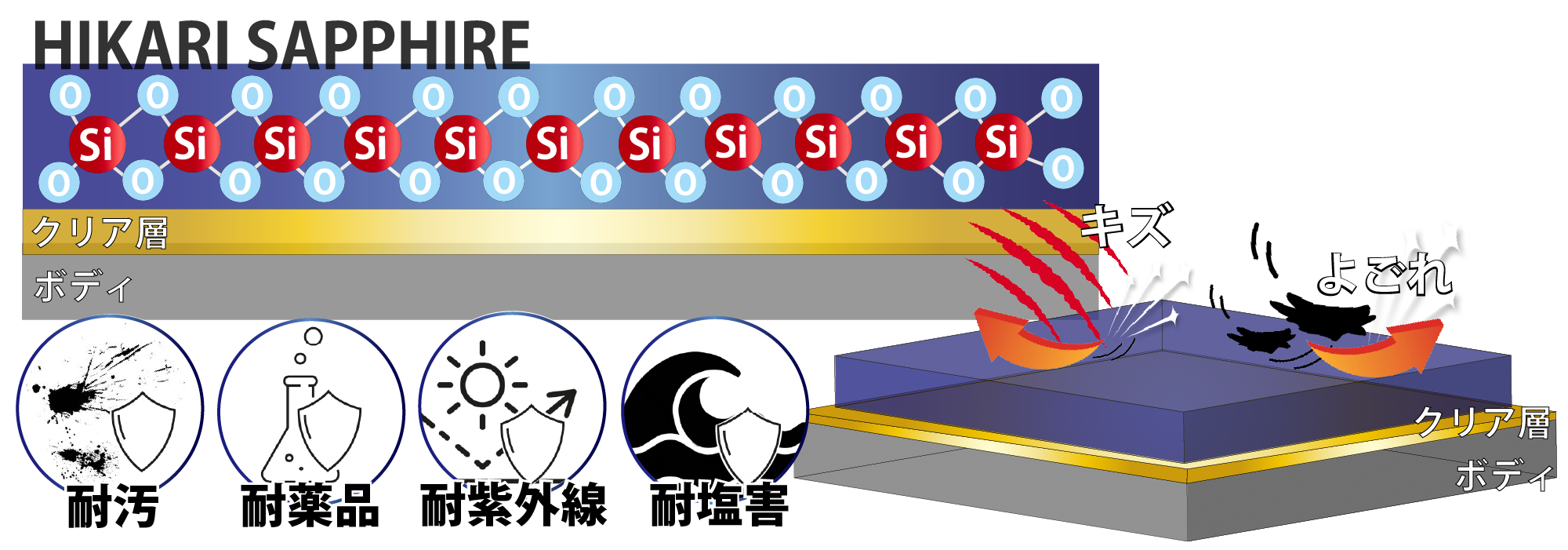 HIKARI SAPPHIREは、高級感ある艶と抜群の撥水性能で、車の塗装を保護。