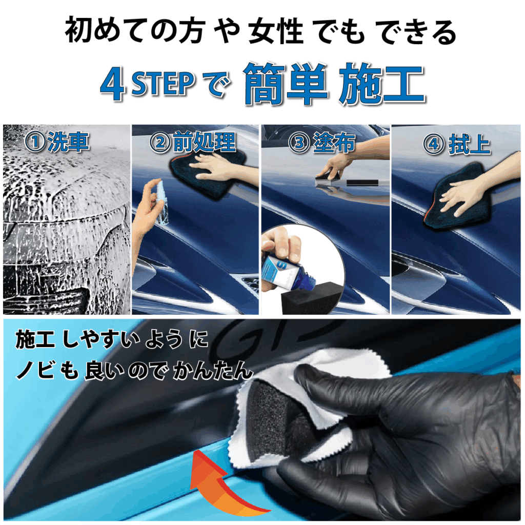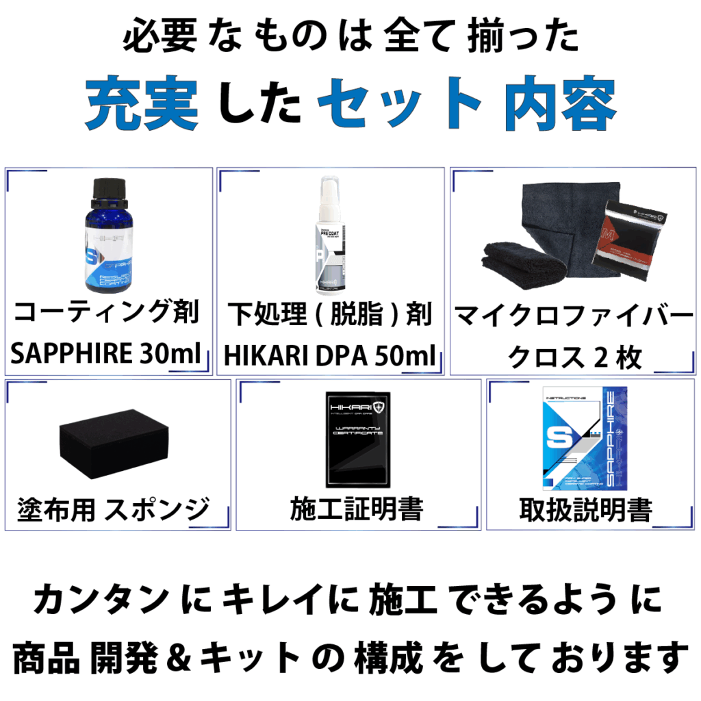 HIKARI SAPPHIREは女性のお客様や、コーティングが初めての方でも、カンタンにキレイに施工できるように商品開発しております。